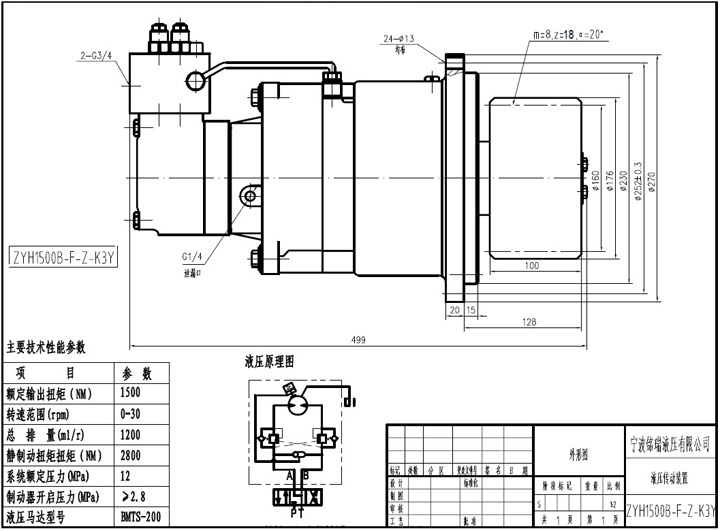 ZYH液壓回轉(zhuǎn)裝置改變了原有減速器龐大的體積和分體設(shè)計的思路,把液壓馬達(dá)、制動器、減速器、液壓控制系統(tǒng)、和輸出齒輪設(shè)計為整整體,從而具有轉(zhuǎn)速低、扭矩大、體積小、重量輕、安裝方便等特點。