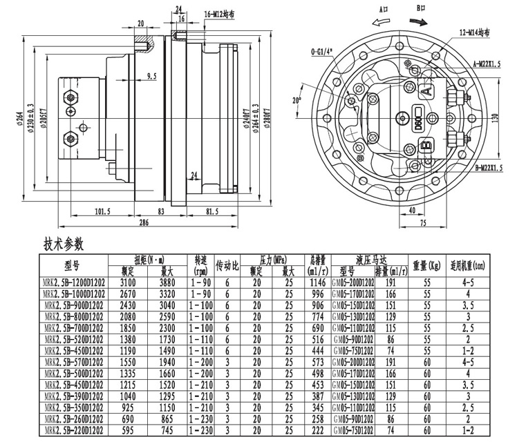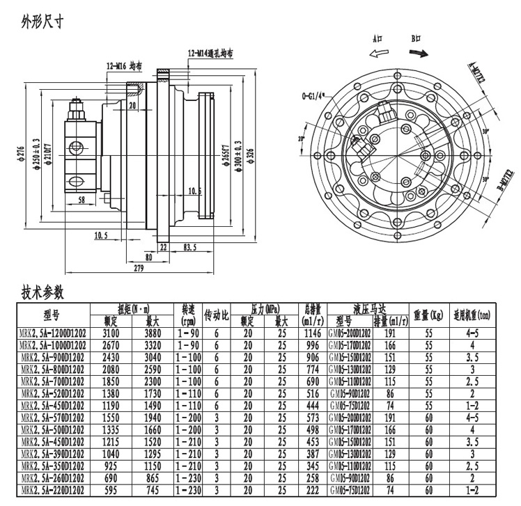 MRK2.5系列履帶(車輪)用行走減速機(jī)適應(yīng)于機(jī)重五噸以下,輸出扭矩4000NM左右,采用單級(jí)行星減帶器,外觀緊湊。